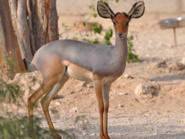 La beira est une frêle antilope: mâle et femelle ne dépassent guère 50 cm de haut. Le cou, le dos et la courte queue touffue sont gris-roux avec un reflet argenté dû à la pointe blanche des poils. Le ventre n'est pas vraiment blanc comme chez la plupart des antilopes, mais plutôt jaune clair. La face externe des membres est fauve, plus foncée vers le bas; les yeux sont cernés de blanc, les oreilles, très grandes, ont une forme de feuille. Seul le mâle porte des cornes; celles-ci, longues d'une douzaine de cm, sont minces et légèrement incurvées.