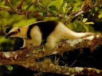 Le Tamandua, l'un des trois fourmiliers de Guyane, est un animal au pelage dense et jaunâtre tirant suivant certains individus vers une sorte de beige-marron clair. Il arrive de voir aussi des spécimens qui portent une zone de poils plus foncés presque noirs donnant l'illusion d'une veste ou d'une cape portée sur le dos et qui s'étend sur les flancs allant jusqu'à rejoindre la région ventrale. Son corps mesure de 53 à 88 cm auquel il convient de rajouter une queue longue pouvant mesurer de 40 à 59 cm. Ce qui donne au total une taille pouvant atteindre 1 m 40 mais qui est court sur patte.