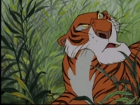 Le tigre boiteux, l’ennemi juré de Mowgli dont il veut faire sa pâture. Ayant appris son existence, il change de terrain de chasse et part réclamer, en vain, l’enfant au clan. C’est sous ses conseils insidieux que le Peuple Libre bannit Akela et Mowgli du clan, non sans que ce dernier ne lui ait brûlé les moustaches. Lors de la trêve de l’eau, il vient souiller le mince filet d’eau où tous viennent s’abreuver de sa gueule ensanglantée par le meurtre d’un homme. Malgré ce crime –tuer un homme apporte beaucoup de malheurs dans la jungle-, Hathi ne peut rien faire car le tigre est dans son droit, c’est la nuit (Cf. Comment vint la crainte). Il mourra piétiné par les buffles menés par Mowgli et les siens et sa peau pourrira sur le Rocher du Conseil.