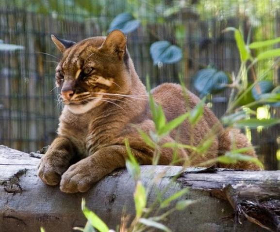 Le Chat de Temminck a une robe est généralement unie et de couleur rousse mais un marquage facial composé de bandes blanches permet de facilement le reconnaître.